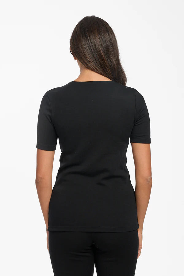 Experience the perfect balance of warmth and breathability with this 240g Merino wool thermal. The luxuriously soft fabric drapes gently against your skin while providing exceptional insulation for cooler days. Featuring a classic scoop neckline and short sleeves, this piece offers generous stretch for unrestricted movement. True to size, it's designed to fit comfortably without excess bulk, making it an essential layering piece or standalone top for year-round versatility.