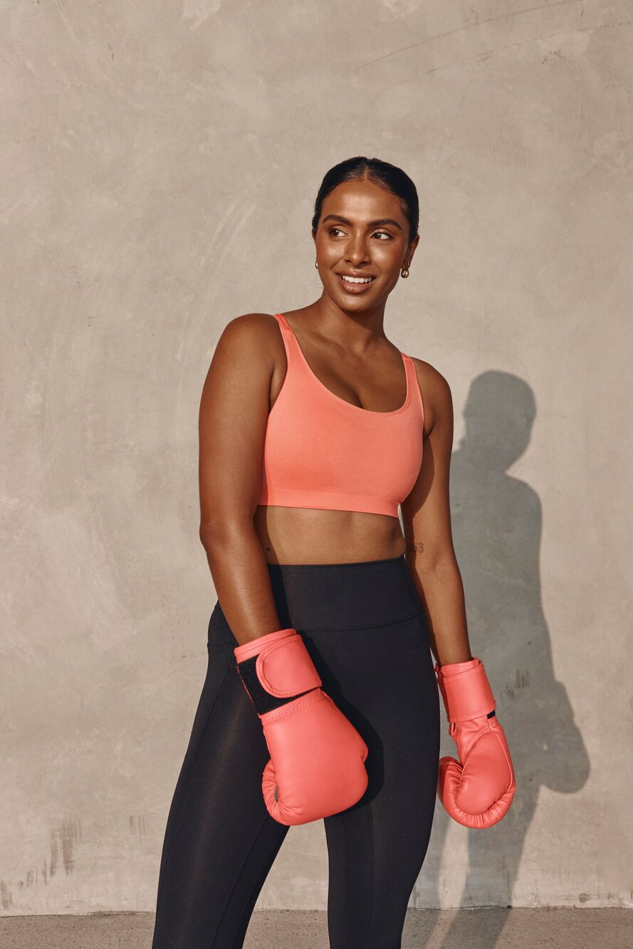 The Triaction Ultra Seamfree top, inspired from our Triumph's seamfree crop top is now better than before. Circular knit technology holds you in place while moisture-management fabric wicks sweat away from the body.
