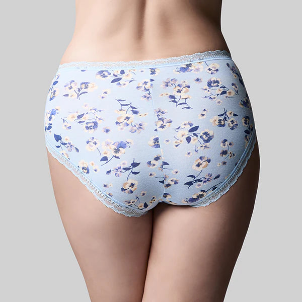 Classic Cotton Hi Cut Brief - Sky Blue Pansy