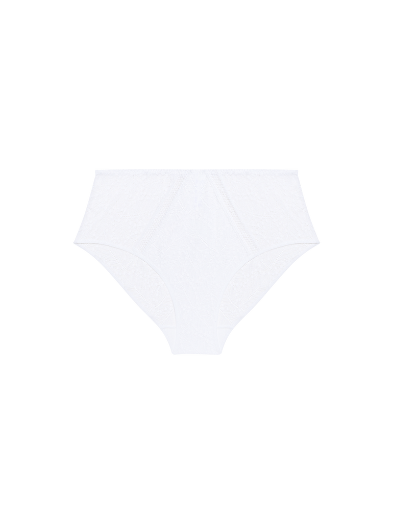 A vintage look equipped for advanced comfort. These high-waisted lace briefs couple vintage charm with modern design. The super fine, flat binding across the thigh ensures invisibility under clothing. The cotton-lined front is finished with delicate bobbin lacework. And the overall shape works to flatten the stomach, while ensuring there’s no ride up or roll.