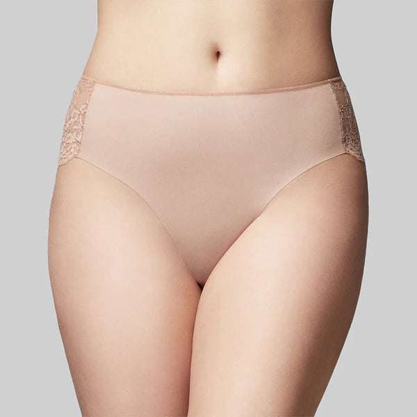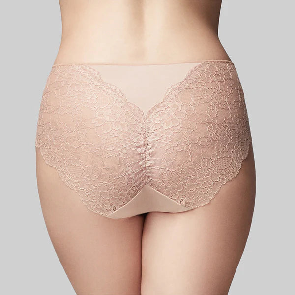 The Knicker Precision And Lace Hi Cut Brief - Nude