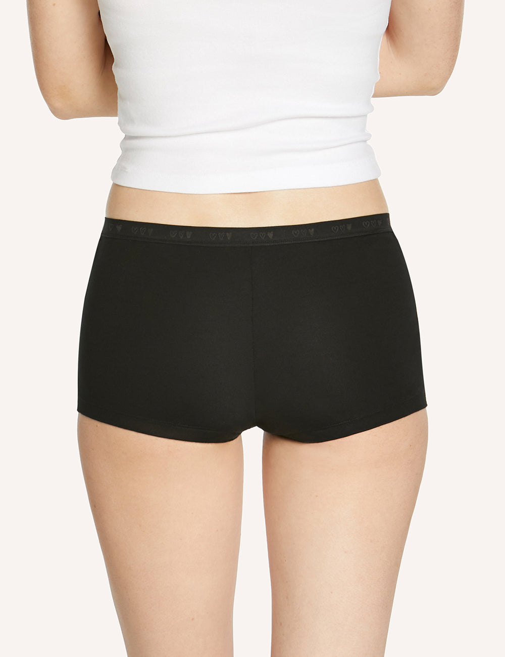 Love Luna's FIRST Period Shortie briefs are specifically designed to fit tweens and teens, made in sizes for younger growing bodies. The shortie offers slightly more coverage on the legs than the briefs and are a super comfortable fit, all day (or night) long.
