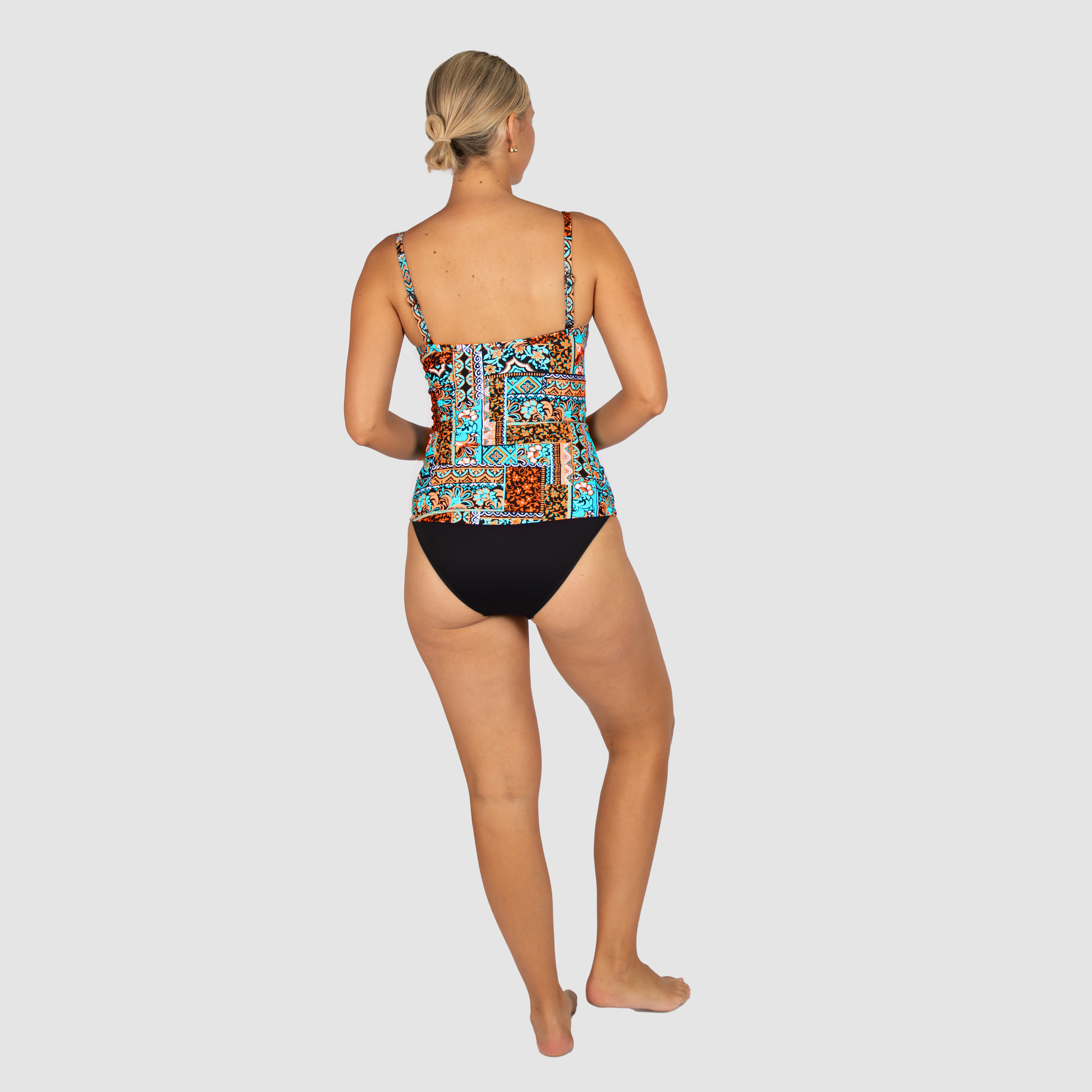 Baku's Tulum D-E Underwire Singlet features hidden underwire support with power mesh stability, boning, and Lycra cup support. It also features adjustable and convertible straps, continuous shelf support, and has flattering front side ruching. Dive into the free-spirited elegance of South Beach with its captivating paisley motif. Inspired by boho-chic vibes, this luxurious design weaves intricate paisley patterns, infusing each curve with a tapestry of mesmerising allure.
