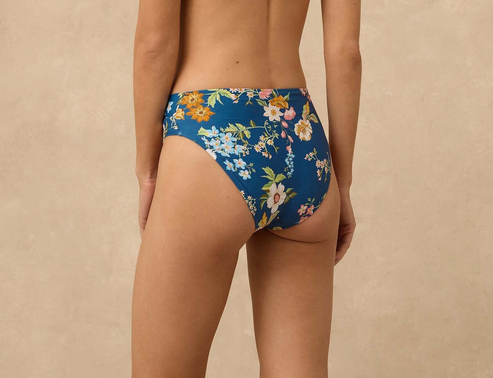 The Jasmin Twisted Mid Rise Ruched Bikini Pant features a cross over twist front waist panel with fuller coverage through the front length, a wider side and a higher cut leg that visually elongates the thigh.
