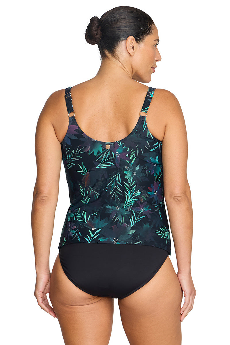 Make a splash with effortless elegance in this stunning navy tankini. The eye-catching floral print brings vibrant style to your poolside look, while the flattering cross front detail creates a sculpted silhouette. Adjustable straps ensure a personalised fit that moves with you, whether you're swimming laps or lounging by the water. Comfort meets sophistication in this versatile piece that transitions seamlessly from beach to resort.